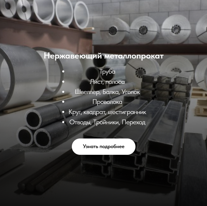 Сайт готов. Возможно добавить как все типы металлопроката, так и только выборочные ( нержавейка, чёрный металлопрокат, цветные металлы, инструментальные стали). Возможно приобрести вместе с базой поставщиков и базой клиентов ( можно по отдельности). Так же на сайт можно интегрировать актуальное наличие с ценами ( в том числе если у Вас нет своего наличия то можно сделать цены Ваших поставщиков + Ваш процент). Итого можно приобрести как целый автономный бизнес.